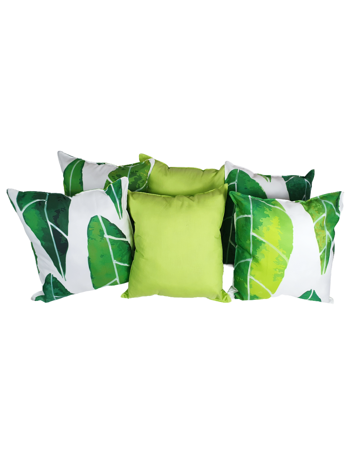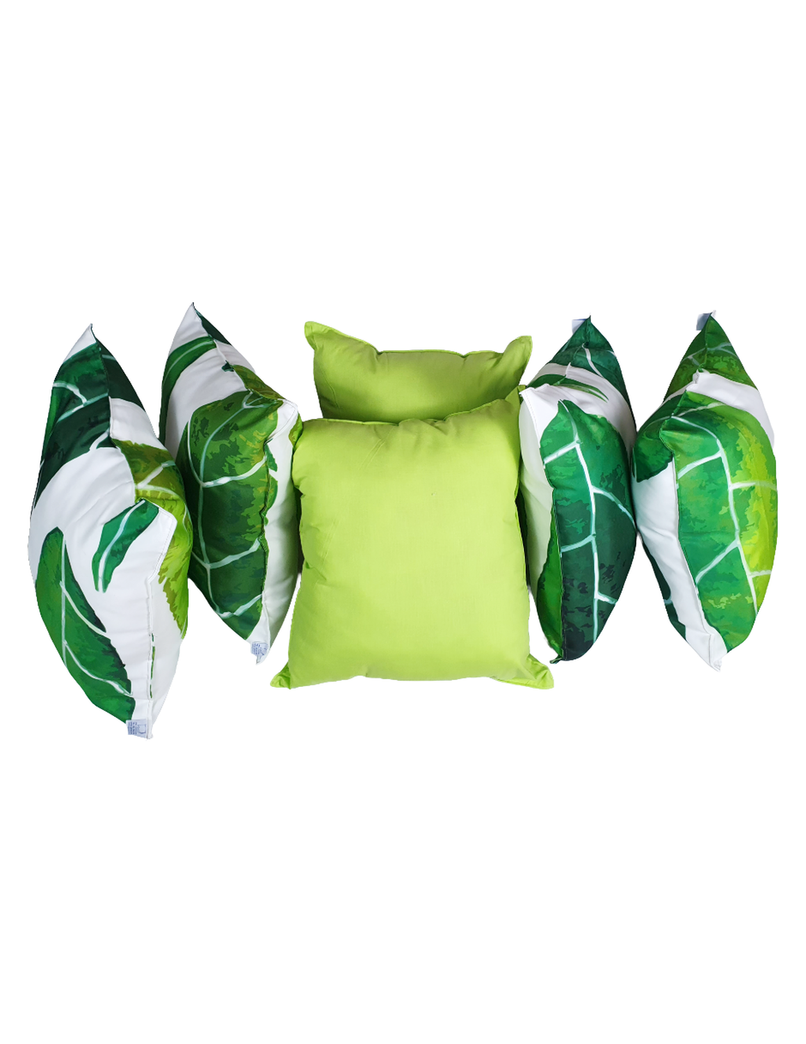 Set de 6 cojines suaves y elegantes, perfectos para sala, recámara o terraza. 4 decorados y 2 lisos en tonos verde. Su diseño versátil combina con cualquier decoración, aportando confort y estilo. Fabricados con materiales resistentes y de fácil cuidado para disfrutar por mucho tiempo.