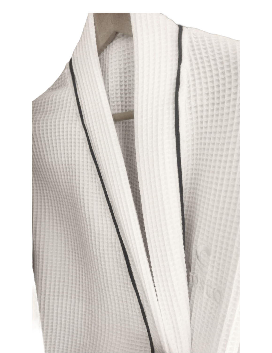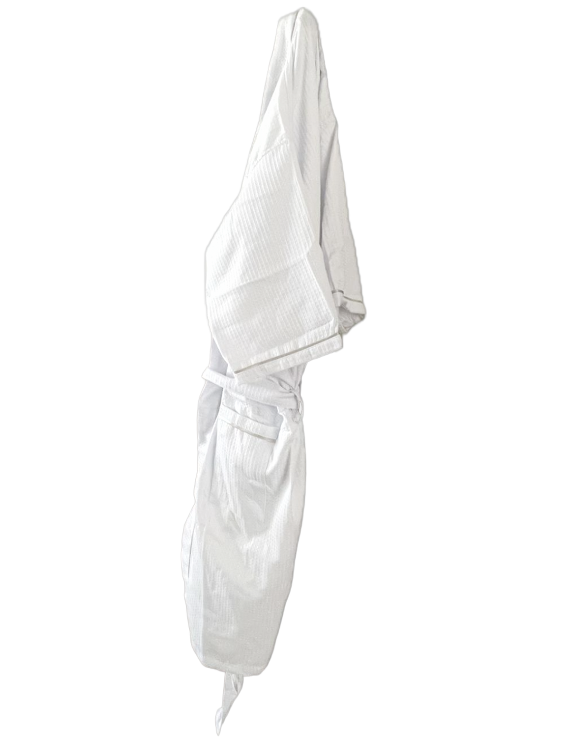 Bata para baño Tela Waffle Color Blanca. Tipo Kimono.