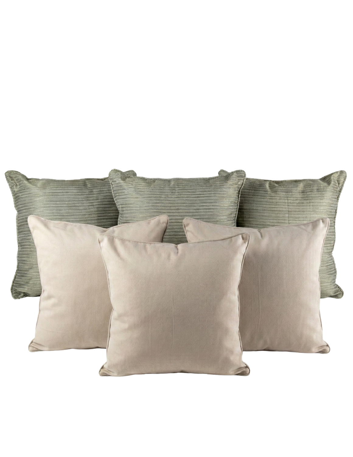Eleva el estilo de tu sala o recámara con este elegante set de cojines en combinación verde olivo texturizado y beige liso, diseñados para crear ambientes cálidos, modernos y acogedores.